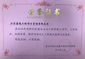江蘇嘉越工程項目管理有限公司成立于1997年,擁有房屋建筑工程監(jiān)理甲級資質,市政公用工程監(jiān)理甲級資質。擁有GB/T19001-ISO9001質量管理體系認證證書。是江蘇省項目管理、全過程工程咨詢試點企業(yè),是江蘇省“優(yōu)秀監(jiān)理企業(yè)”、“先進監(jiān)理企業(yè)”。是江蘇建設招投標與監(jiān)理協(xié)會常務理事單位,常州市建設監(jiān)理協(xié)會會長單位。
